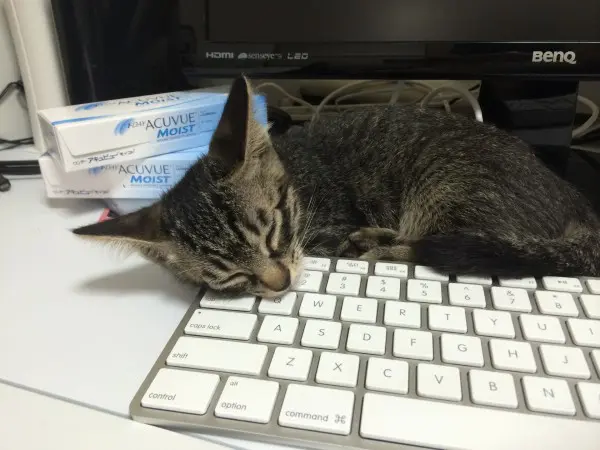 一週間ほど前に猫が仲間に加わりました。 もちろん子猫期間は今しか無いので写真・動画を残しておこうという感じです。 なかなかの甘えん坊さん。 写真をずらーっと 動画 猫用iPadアプリで遊ぶ 夢中です。途中アプリが切り替わってびびってます。 よく鳴く -
